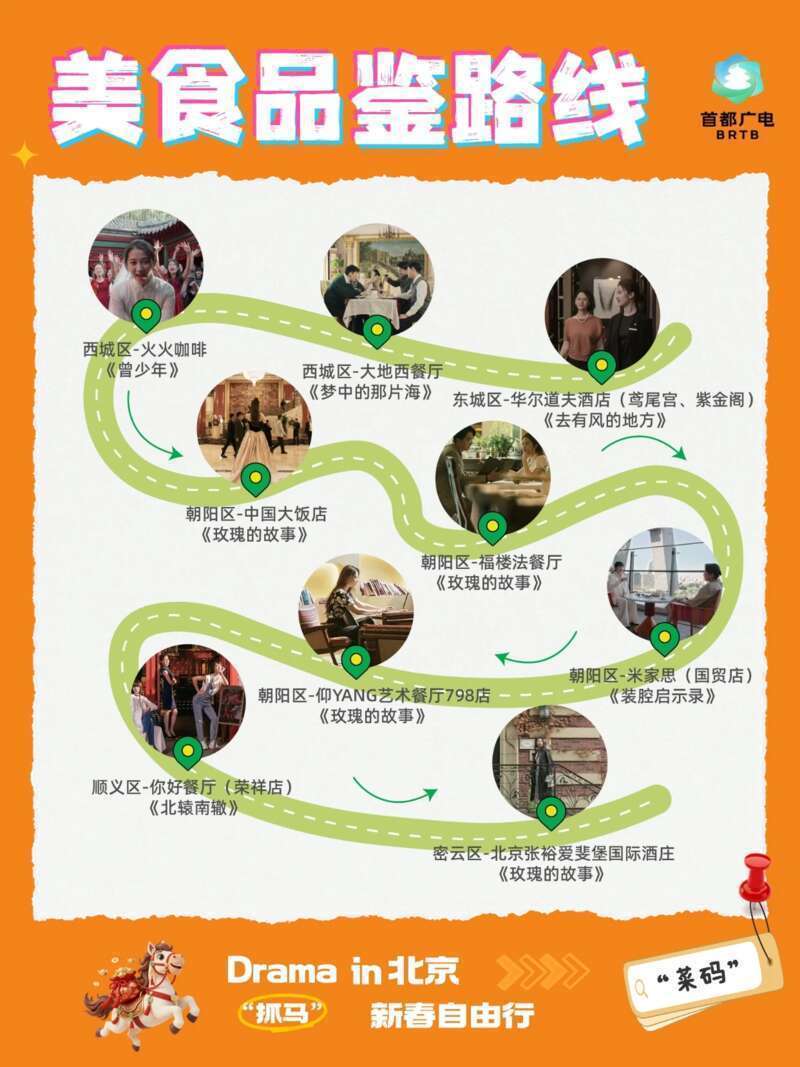 12条特色影视打卡路线以“Drama in 北京,新春自由行”为主题,借用“马”的谐音串联起12种各具特色的京味玩法,引导市民游客沿着《玫瑰的故事》等热门影视剧的光影足迹,深度探索北京。