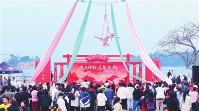 其他景区也纷纷亮出绝活,万绿湖风景区创新推出“飞天神韵·花舞迎新”暨十二花神“空中芭蕾”演艺,将自然山水与高空艺术完美结合,龙川杂技表演的《蹬鼓》《抖空竹》更是点燃游客热情,吸引众多摄影爱好者打卡留念。巴伐利亚庄园的“焰火跨年生活嘉年华”、客天下国际旅游度假区的“万物鸣朝”音乐嘉年华、春沐源小镇的“跨年烟花音乐夜”等活动,融合焰火、音乐、非遗、国潮等元素,营造出浓厚的节日氛围,单场活动吸引游客最高超5000人。此外,市文化馆的“福气小马迎新年”亲子手工、市图书馆的阅读推广、佗城学宫的“墨香福韵·非遗迎新年”书画展等文化惠民活动,也备受追捧。